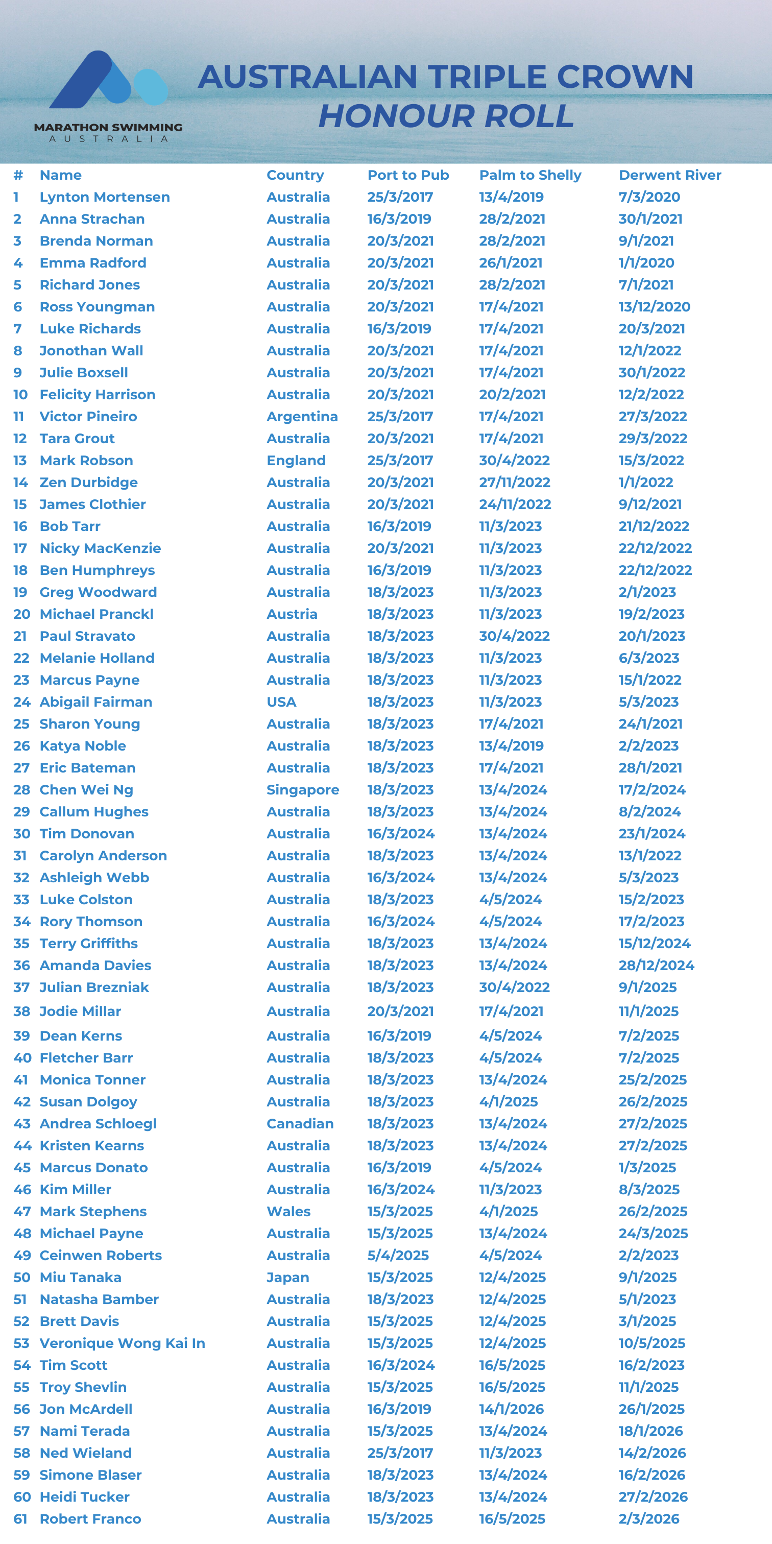 Australian Long Swims Database